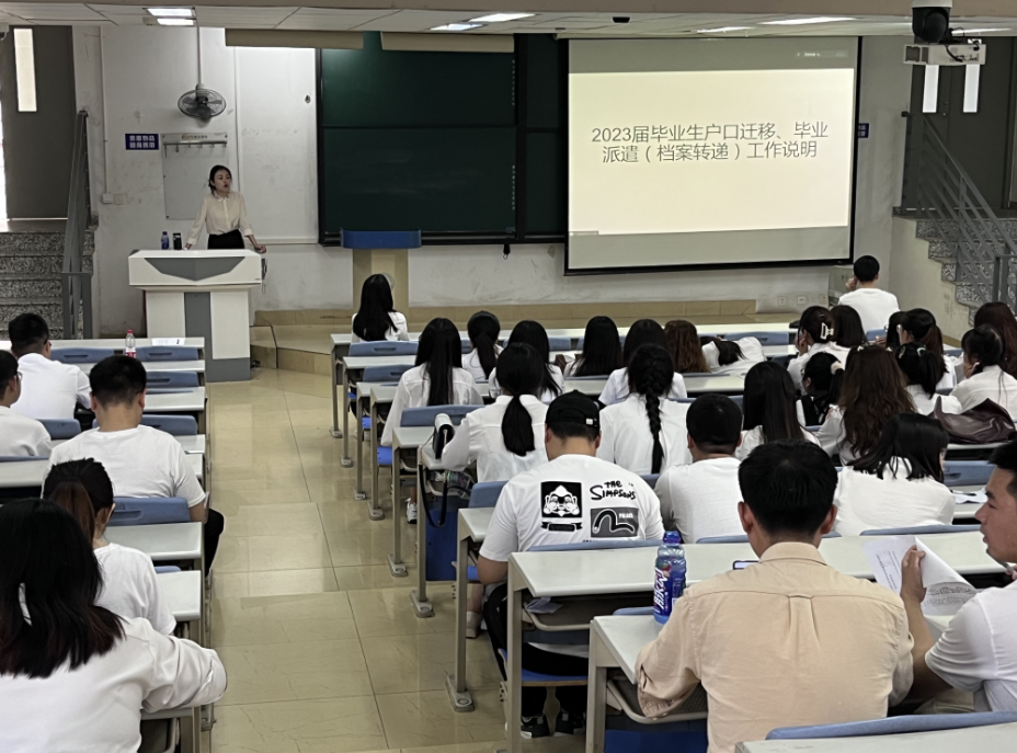 会上,李婷申老师通过多种实例面向学院2023届全体研究生毕业生详细讲解了户口迁移、档案转递信息、毕业手续办理流程等事项。
