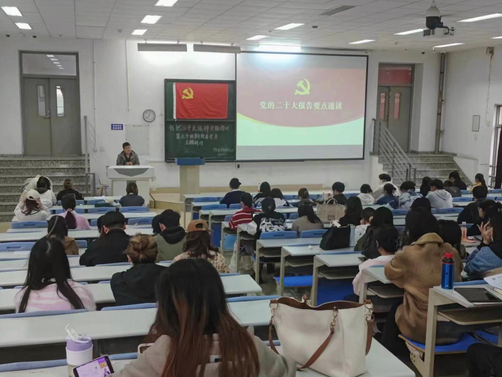 2023年4月20日中午,经济与管理学院第三十四期预备党员培训班“我把党的二十大精神讲给你听”主题研讨活动在滨海中校区图书馆7阶举行。本次活动由经管学院辅导员郑辰星老师进行领讲。