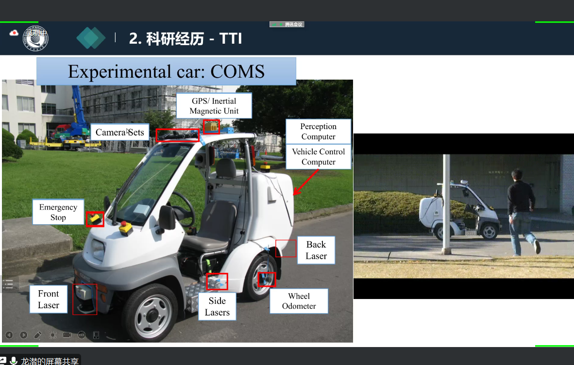 会议伊始,龙潜老师首先从自己的个人求学经历和科研经历出发,分享了他的科研心得体会与研究成果以及自己在自动驾驶领域的见解和思考。龙潜教授告诫大家在做科研时一定要有定力,对自己做的东西要足够坚持,找出自己真正喜欢的东西。只要坚持下去,总能做出成果。紧接着,龙潜教授介绍了自己的研究成果,重点展示了双目视觉技术在自动驾驶中的应用,以及当前自动驾驶技术面临的挑战和未来发展方向。会议的最后,龙潜老师以“科比·布莱恩特”为例,勉励大家找到自己喜欢做的事情,然后坚持下去,就一定能够取得丰硕的成果。