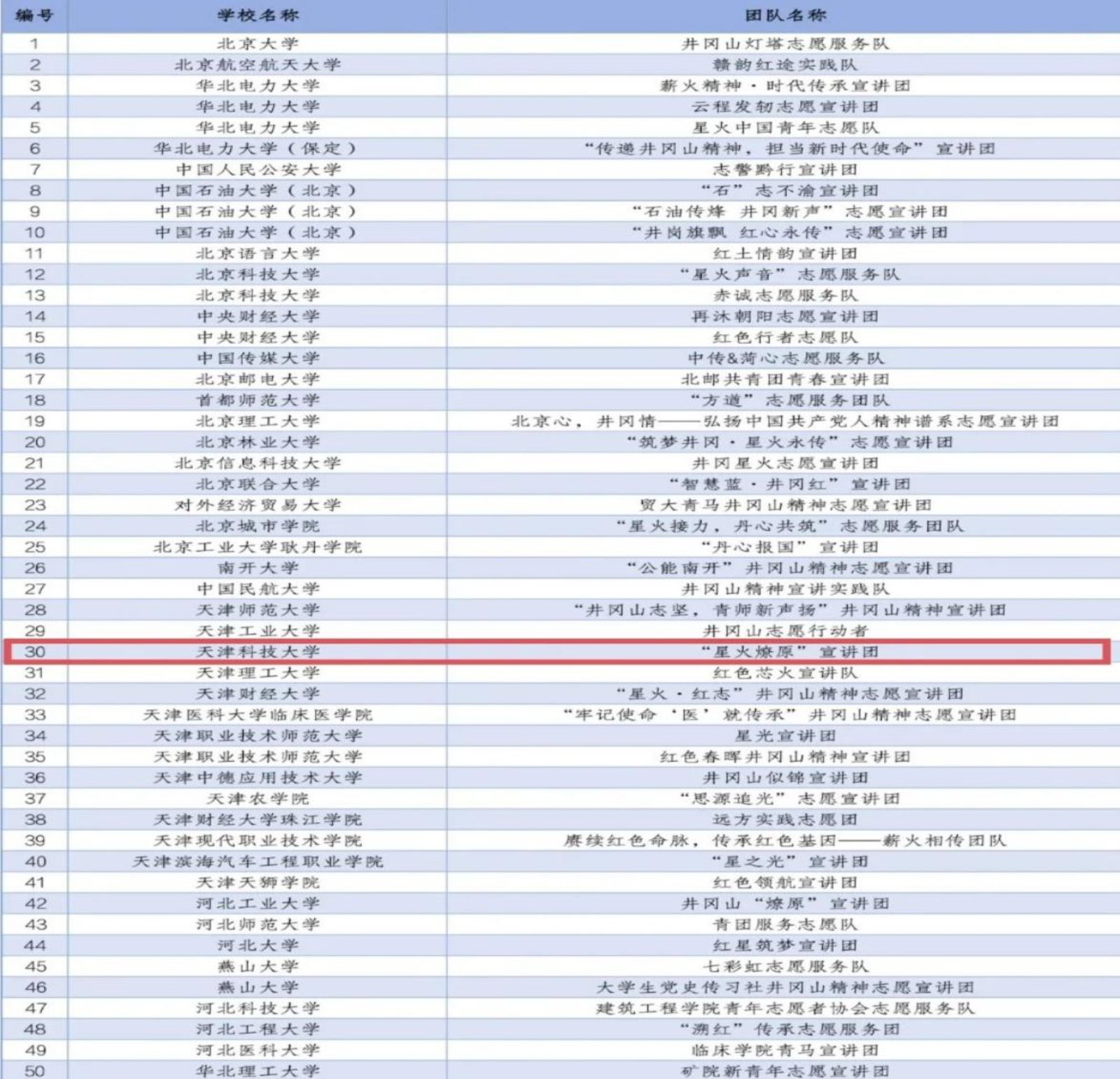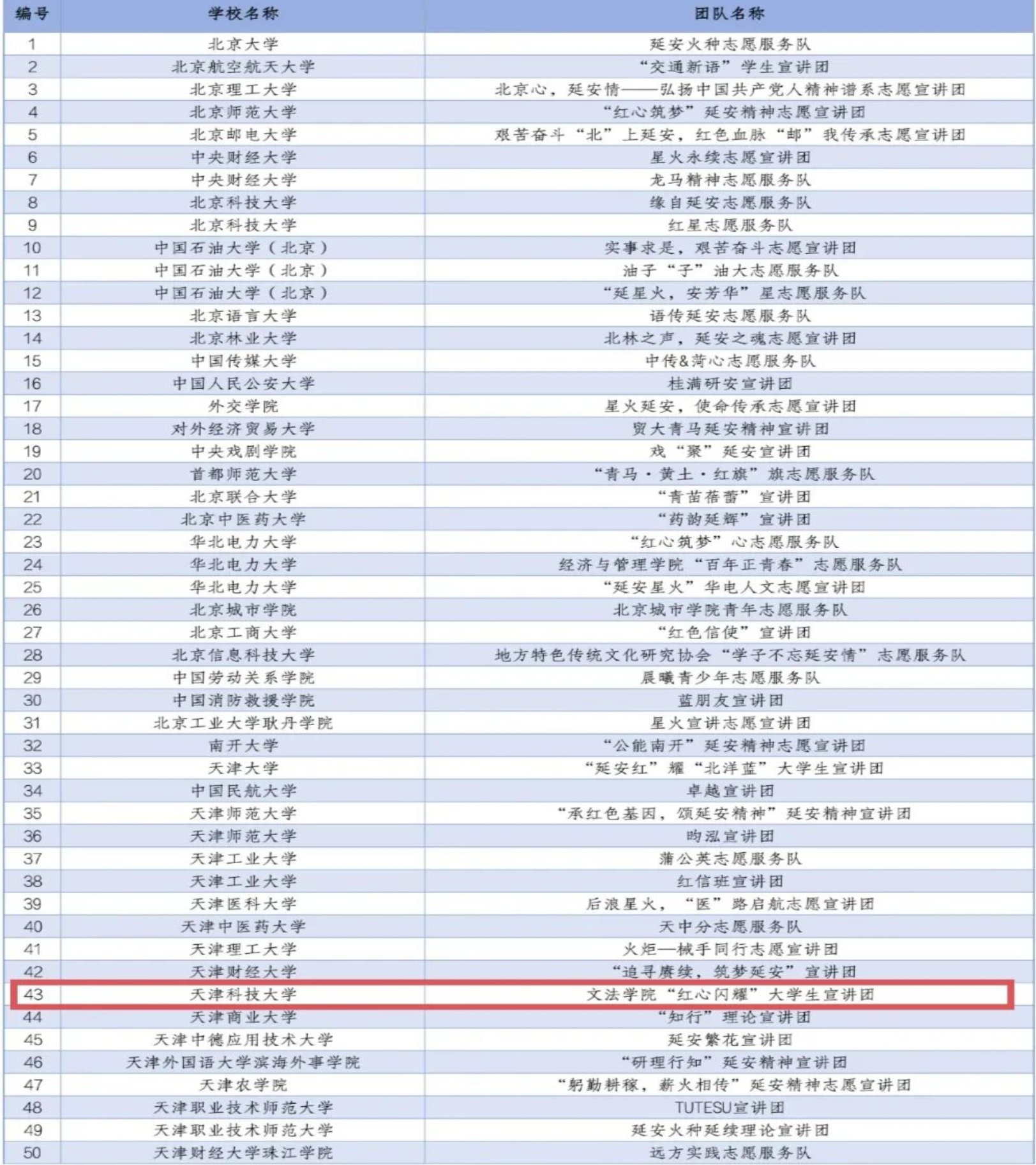 近日,共青团中央公布入选团队名单,经主办单位对所有申报材料认真审阅,最终各类别分别遴选出北京大学、北京航空航天大学、北京理工大学等800余所高校的各1000支大学生志愿服务团队。我院志愿宣讲团队:“星火燎原”宣讲团、文法学院“红心闪耀”大学生宣讲团脱颖而出,成功入选。
