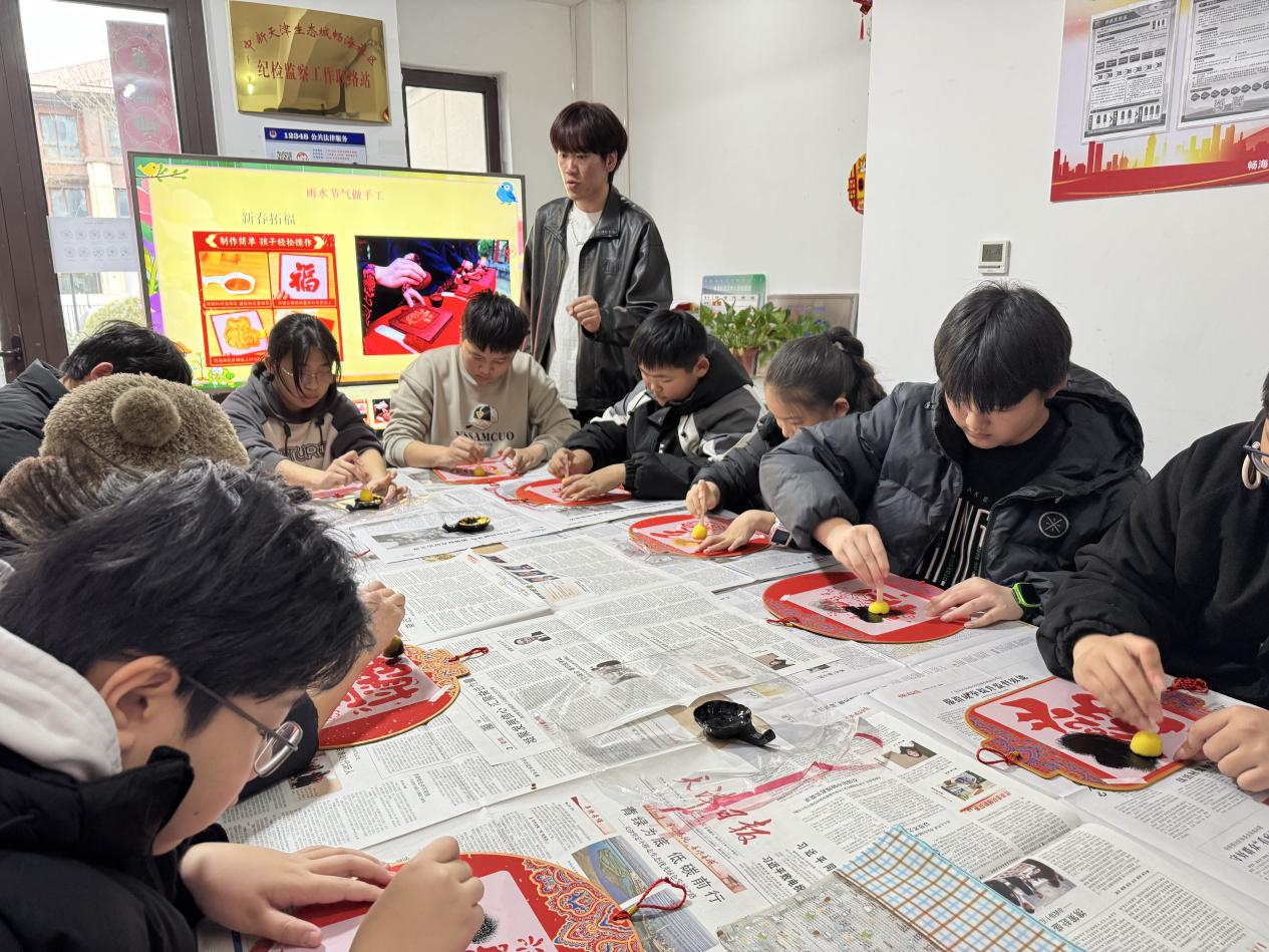 活动的压轴环节,是令人期待的传统技艺体验——“巧手拓福,纳吉迎春”。孩子们化身小小非遗传承人,在指导下体验古老的“拓印”技艺。他们手持拓包,蘸取朱墨,轻轻捶拓特制的“福”字版——版上“福”字的笔画巧妙融入了乳滴、牧草与祥云的纹样,象征着来自草原的滋养与春天的祝福。一方方宣纸上,逐渐浮现出清晰、喜庆的红色“福”字。孩子们还将自己的创意融入其中,用彩笔在拓印周围添画上绵绵春雨、新芽破土,或是悠然乳牛、辽阔草原。每一幅“拓福”作品,都是一次与传统文化的深情触碰,将节气的美好寓意与健康的饮食祝福,永久留存于方寸纸墨之间。
