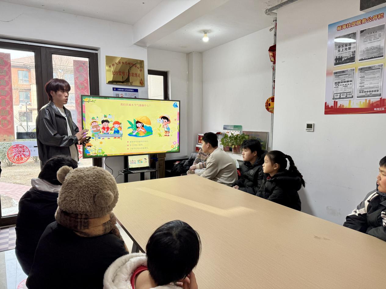 活动伊始,趣味十足的PPT便牢牢吸引了青少年们的目光。生物工程学院研究生张志鑫娓娓道来,为孩子们详解雨水节气的时间节点与气候变迁,阐释“春雨贵如油”的深刻内涵,让大家知晓春雨对农耕生产的非凡意义。他还巧妙设计与雨水节气相关诗词的问答环节,将节气文化与古典诗词之美相融,引得孩子们踊跃思考、争相作答。紧接着,他引出“雨水三候”的知识:一候獭祭鱼,冰雪消融之际,蛰伏的水獭苏醒捕鱼,将鱼儿陈列岸边,宛如祭祀之仪;二候鸿雁来,北方日渐回暖,湖泊冰河解冻,大雁携着春光启程北归,寻觅繁衍栖息之地;三候草木萌动,绵绵春雨浸润大地,枝头绽出点点嫩绿,草尖破土而出,处处涌动着新生的气息。