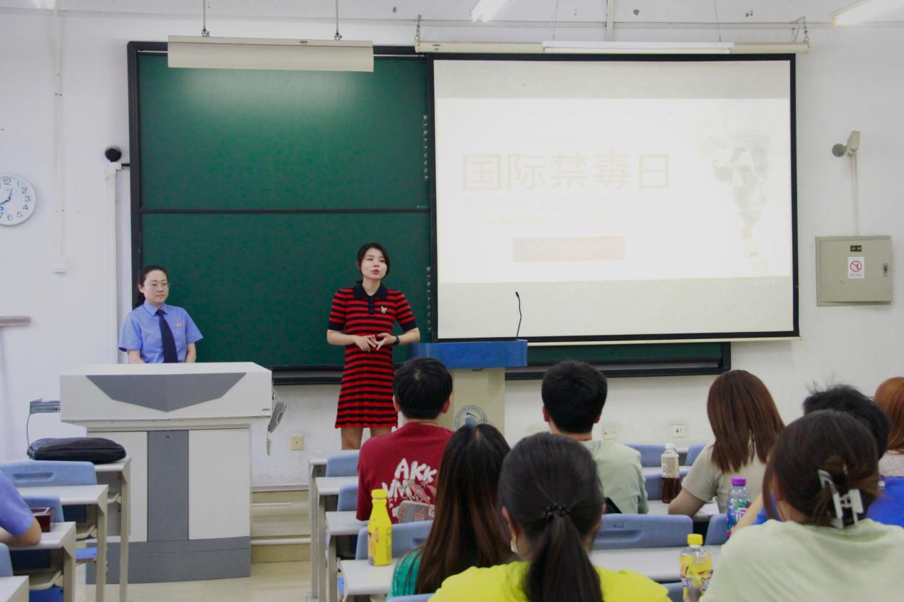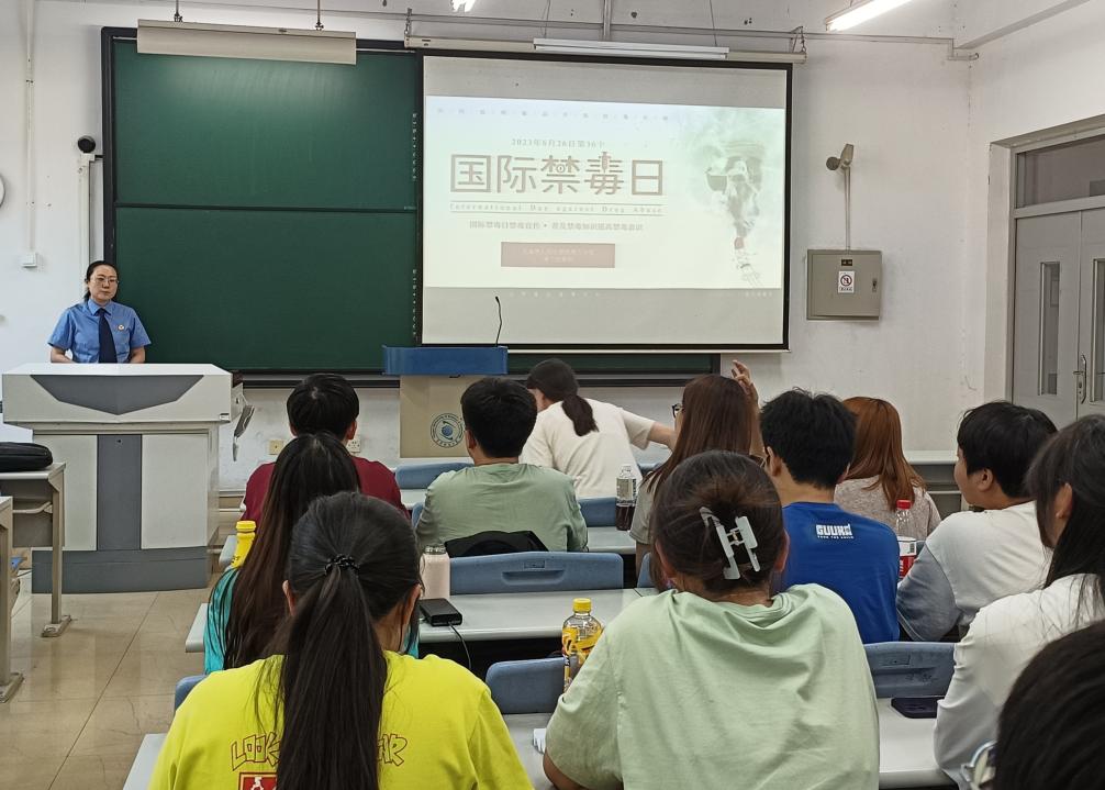 2023年6月26日是第36个国际禁毒日。为进一步提升学生识毒、防毒意识和自觉抵制毒品的能力,加强自我防范,筑牢校园法治安全防线,6月16日,生物工程学院邀请了天津市第三人民检察院第三分院的检察官在滨海校区中院3号楼104围绕“健康人生、绿色无毒”开展禁毒宣讲。宣讲会由学院辅导员申莉老师主持,各年级学生代表参会。