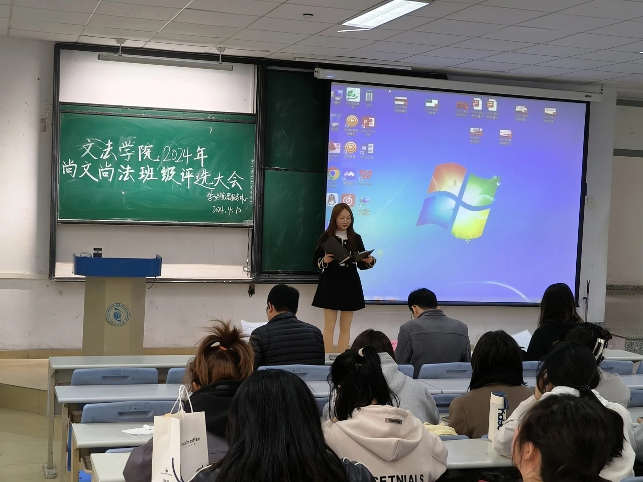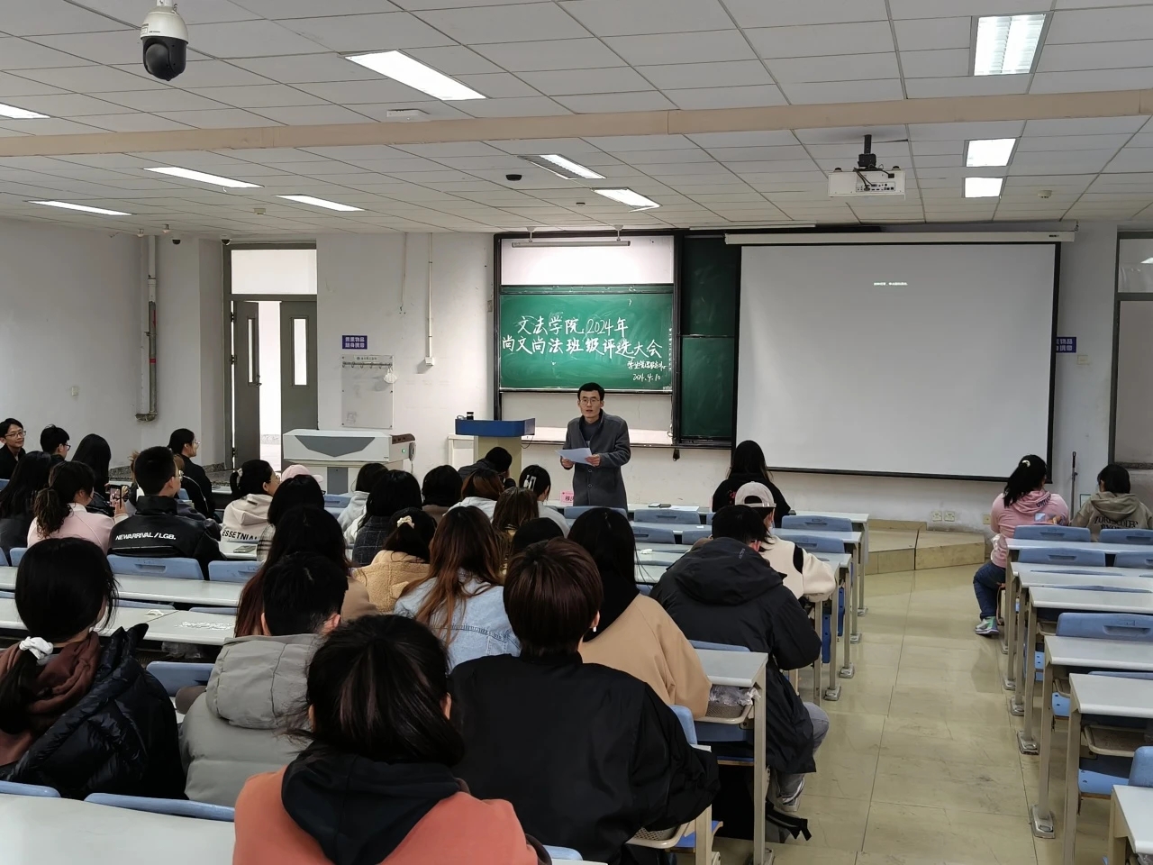 为了落实我校“先锋计划”的实施方案,为学院高质量内涵发展提供坚实基础,2024年4月10日,文法学院于图书馆第十阶梯教室举办了2024年尚文尚法班级评选大会。本次选举由2020级辅导员穆庆夏老师、2022级辅导员薄振兴老师,2023级辅导员买乌露旦老师出席并担任评委。