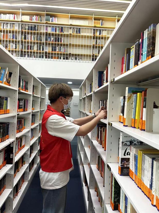 活动伊始,志愿者先是根据自己的工作分配,达到不同的岗位,后在相关工作人员的指导下,深入了解自己岗位的具体职责,以认真负责的饱满精神状态在相关区域内开展工作。志愿者们分工合作,有的对书架上的图书进行分类整理,他们穿梭于一排排书架中,变凌乱混杂为整洁有序;有的为到馆读者提供图书证办证咨询、自助办证机使用指导、阅览规则咨询、场馆指引、书刊检索指导等咨询服务。
