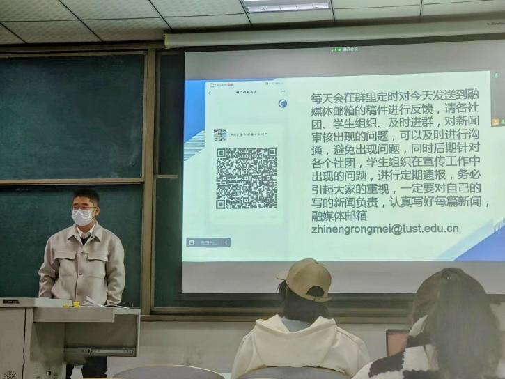 为明确写作要点,规范网络信息发布,提高学院宣传效率,提升团队整体专业素养,人工智能学院融媒体中心于2022年11月开展新闻宣传培训会。会议由融媒体中心学生负责人时正潞主持,学院各社团宣传负责人、各班级宣传委员和融媒体各部门学生参加培训会。